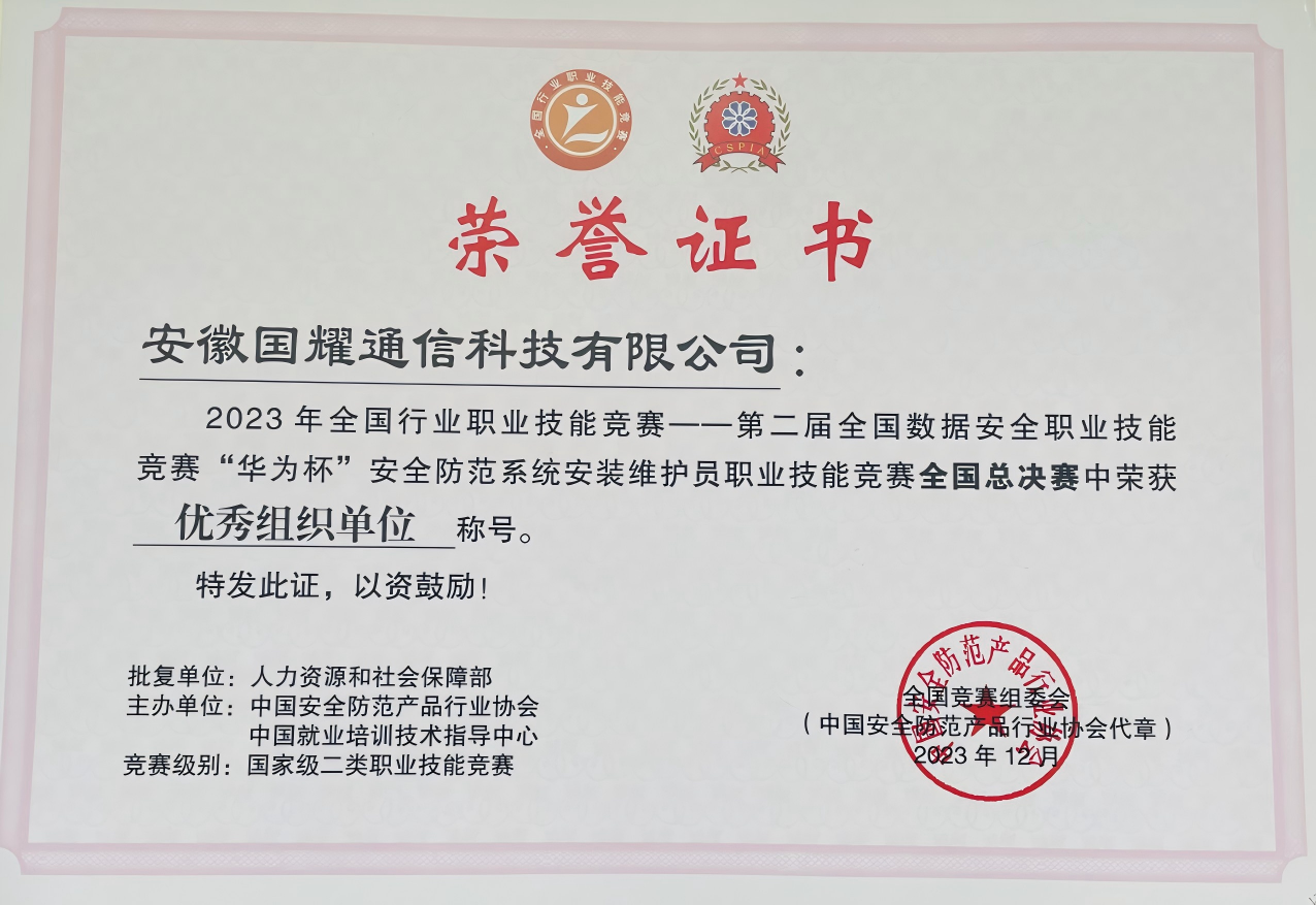 這些獎項不僅僅是一份榮譽,更是對國耀通信在數(shù)據(jù)安全領(lǐng)域的高度認可。它標(biāo)志著國耀通信在安全防范系統(tǒng)安裝維護方面達到了領(lǐng)先水平,為行業(yè)樹立了標(biāo)桿。同時,也激勵著國耀通信在未來的發(fā)展道路上,繼續(xù)砥礪前行,為保障數(shù)據(jù)安全、推動行業(yè)發(fā)展貢獻更多的力量。