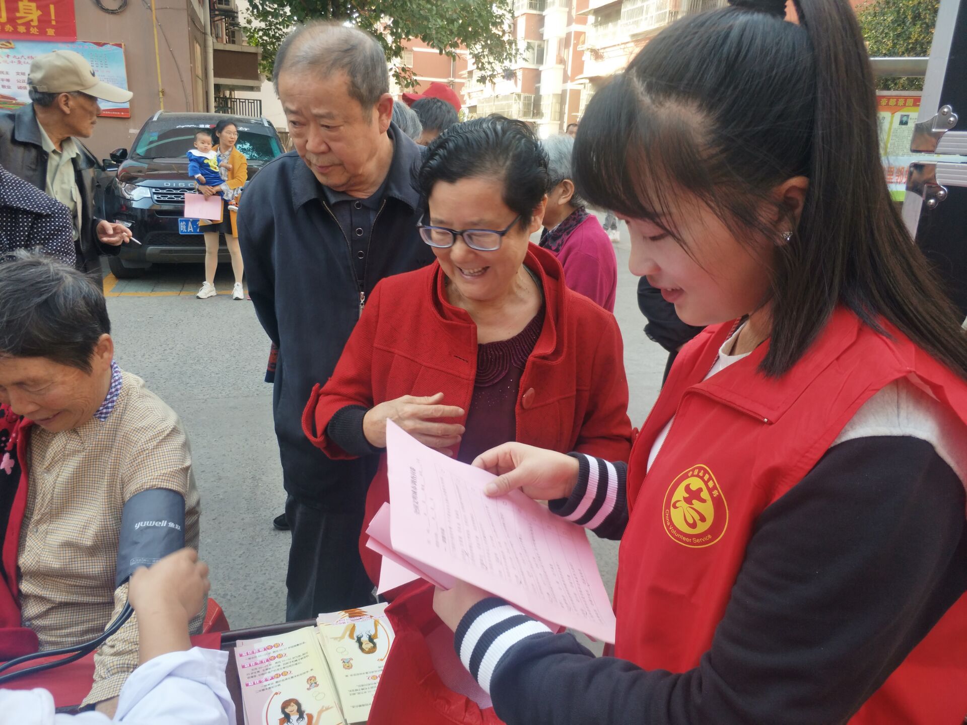 活動開始,大量居民在前往我們活動中心,由醫(yī)護人員免費給居民們測量血壓、血糖,對于血壓或者偏離正常值的居民,給出了一些相應(yīng)的飲食和生活建議,并熱心詢問老人最近身體情況及生活狀態(tài)。