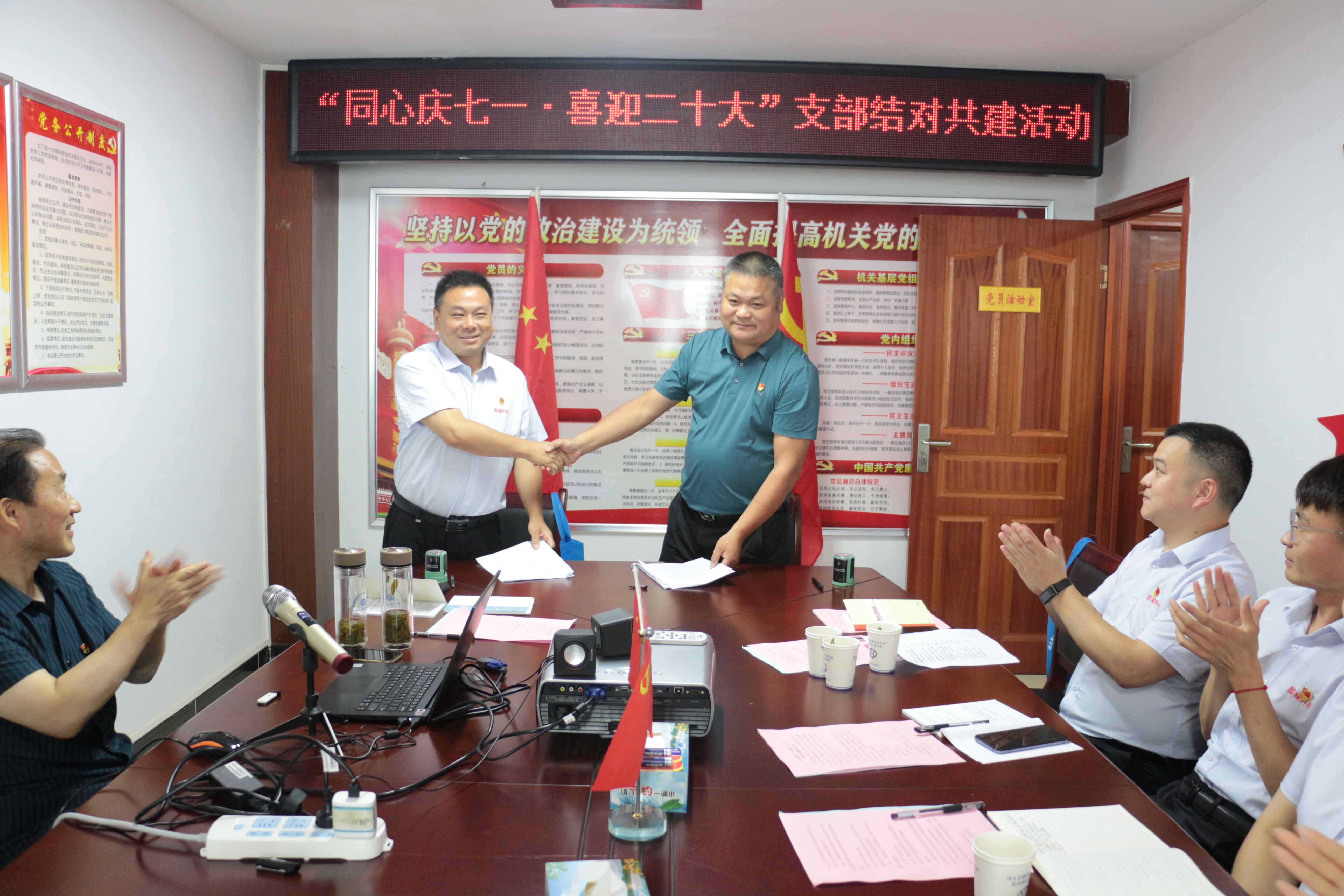 安徽國耀通信科技有限公司黨支部與六安市裕安區(qū)灌區(qū)管理中心機關(guān)黨支部續(xù)簽基層黨組織結(jié)對共建協(xié)議書。