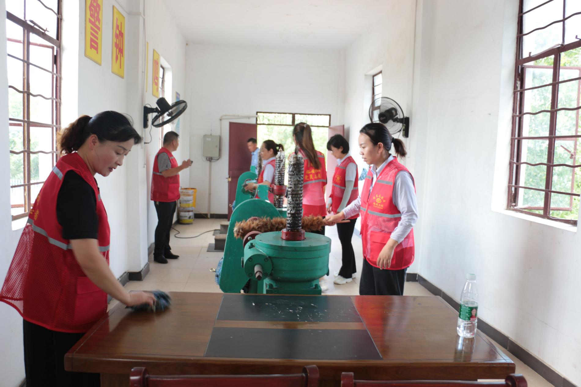 “黨旗高高飄揚,我為群眾辦實事”。兩支部黨員同志協(xié)力打掃泄洪閘機房衛(wèi)生、啟閉機養(yǎng)護、清理沿渠垃圾雜草,用實際行動保護水利設施、珍愛水利工程。